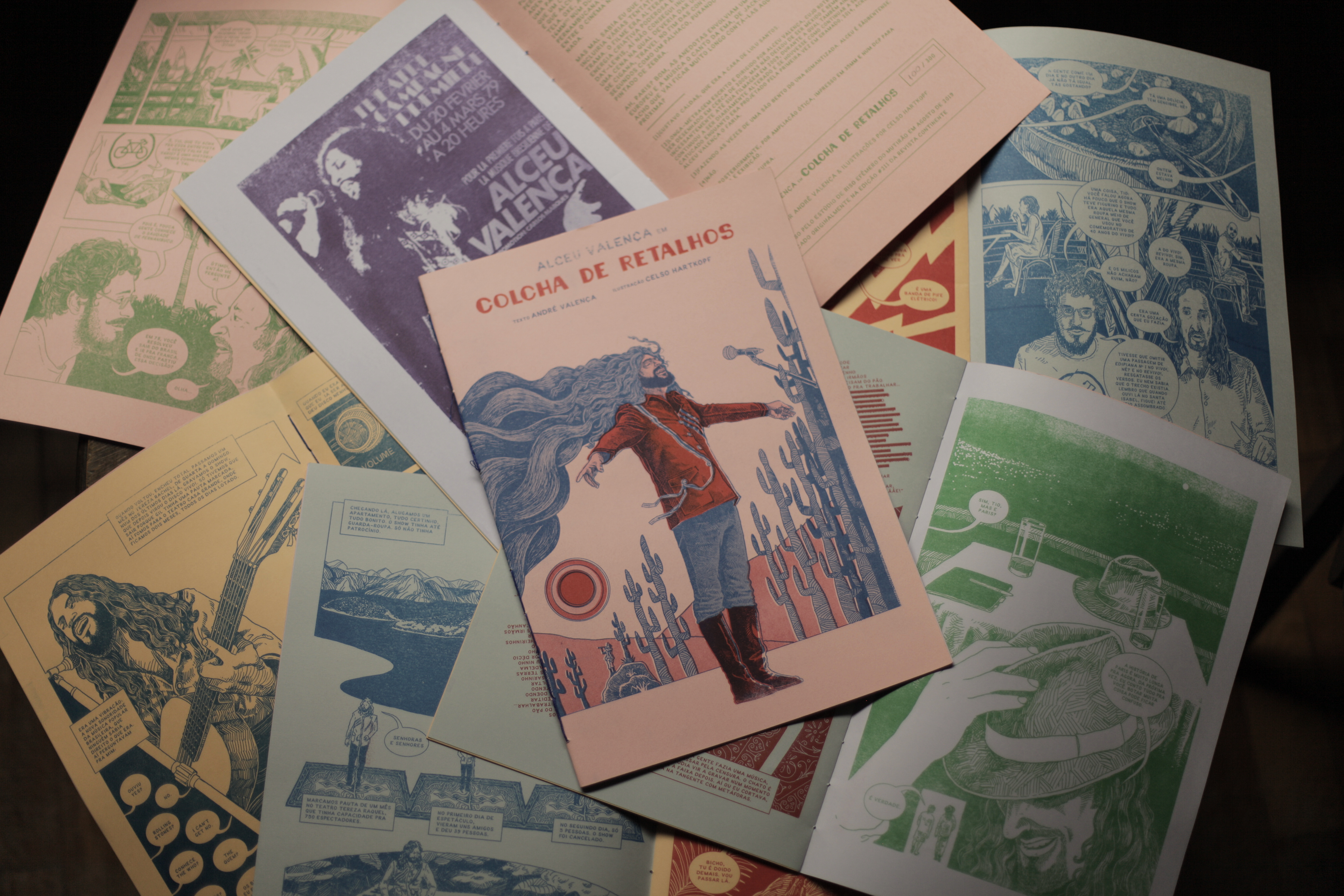 as the work naturally unfolded through each commission, the theme of the three stories became part of the same universe, each one as a biographical fragment of three of the greatest singers and symbols of the brazilian northeast popular song: luiz gonzaga, alceu valença and jackson do pandeiro. together with the bond present in the theme, the graphic style and number of pages was maintained throughout the novels as well, creating the idea of a trilogy.